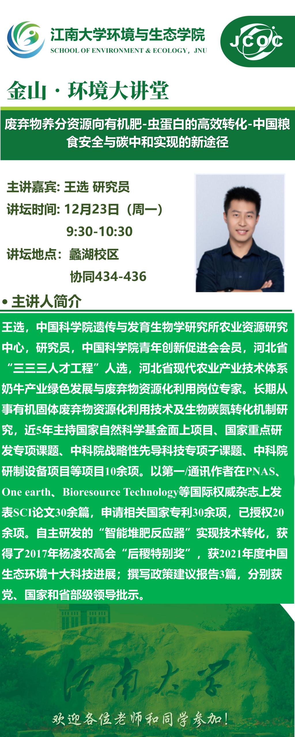 金山•环境大讲堂—王选:废弃物养分资源向有机肥-虫蛋白的高效转化-中国粮食安全与碳中和实现的新途径