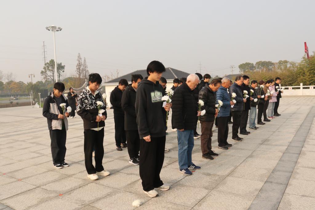 在前往烈士陵园的大巴上,学院关工委常务副主任、党支部书记衡延笃老师开展了“行走的思政课”,讲述国家公祭日的由来和抗战期间征战在无锡地区的新四军部队从抗战初期到最后胜利浴血奋战的历史。他希望同学们以此次祭扫烈士活动为契机,牢记历史使命,不忘初心,砥砺前行。